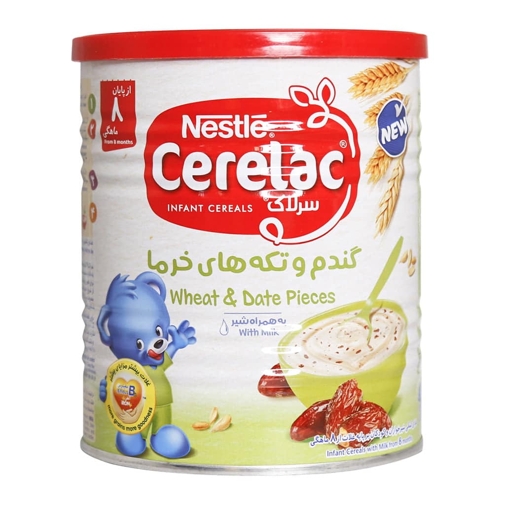 سرلاک گندم و تکه های خرما به همراه شیر نستله