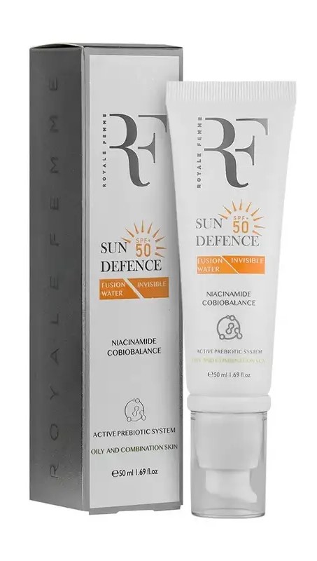 کرم ضد آفتاب بدون رنگ RF رویال فم SPF50 مناسب برای پوست چرب